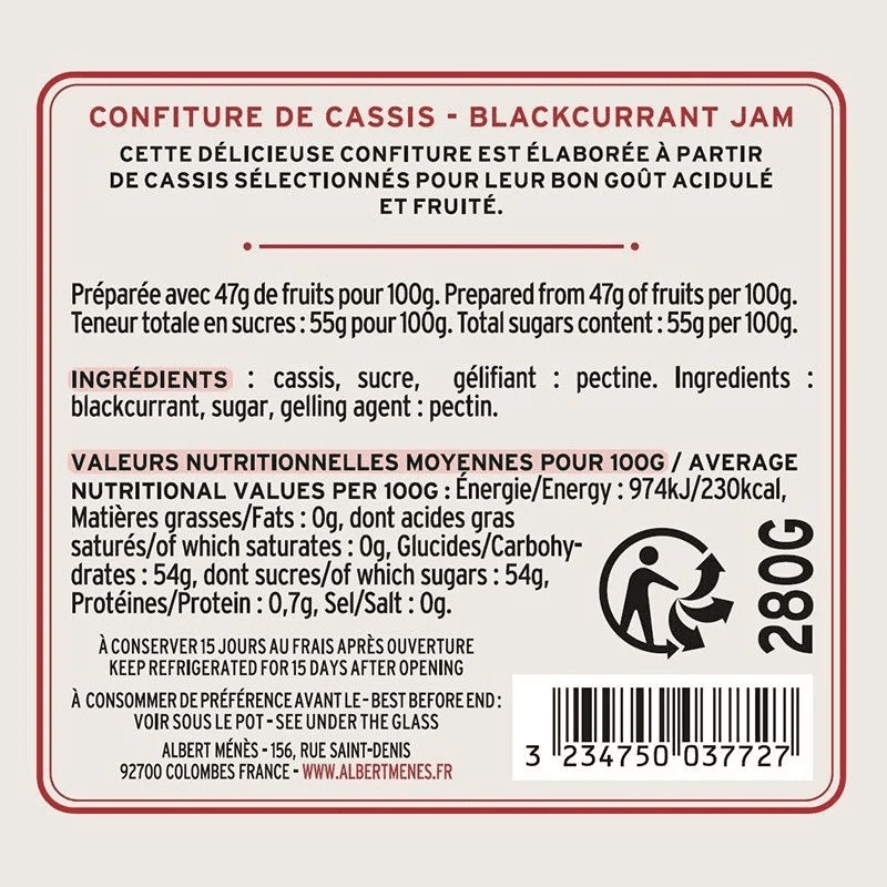 Albert Menes Blackcurrant Extra Jam is a delicious fruit spread that’s made with blackcurrants, cane sugar, and fruit pectin. No artificial sweeteners or colorings are used to make this high-quality jam.