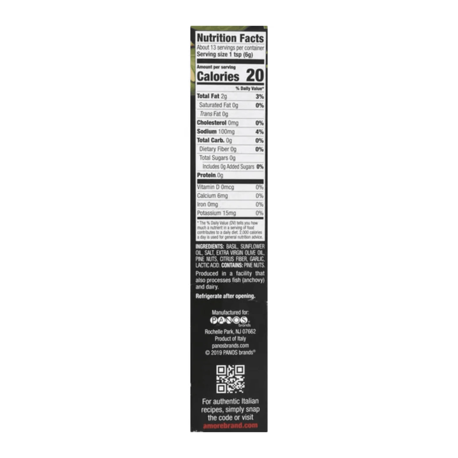 Basil, Sunflower Oil, Salt, Extra Virgin Olive Oil, Pine Nuts, Citrus Fiber, Garlic, Lactic Acid