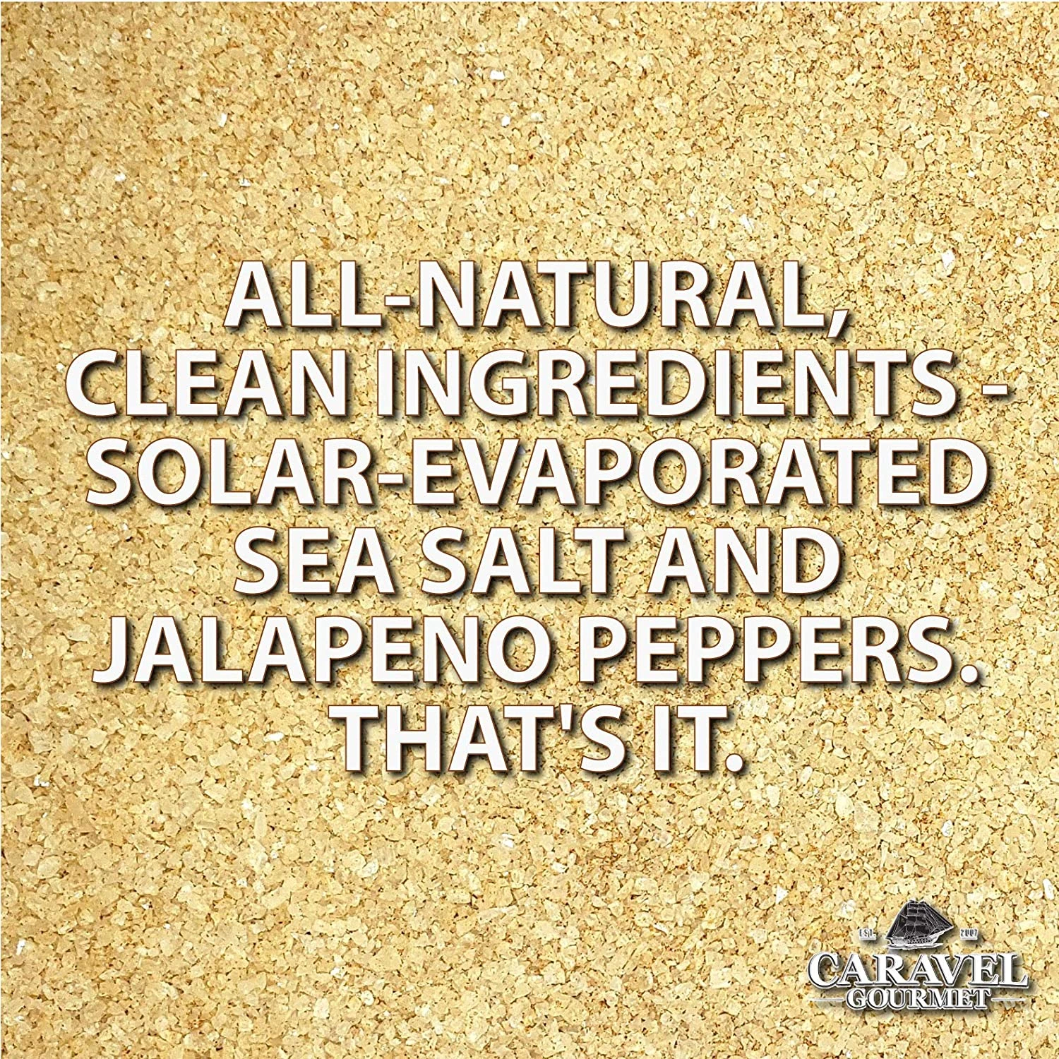 Caravel Gourmet Jalapeño Sea Salt rises above regular table salts by consisting only of dried jalapeño peppers and sea salt — no harsh bleaching or anti-caking agents added.