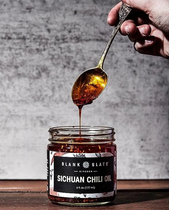 Infused oil (non-GMO sunflower and/or canola oil, ginger, spices, garlic), sichuan peppercorns, red chili flakes, toasted sesame oil, sea salt