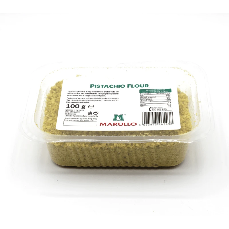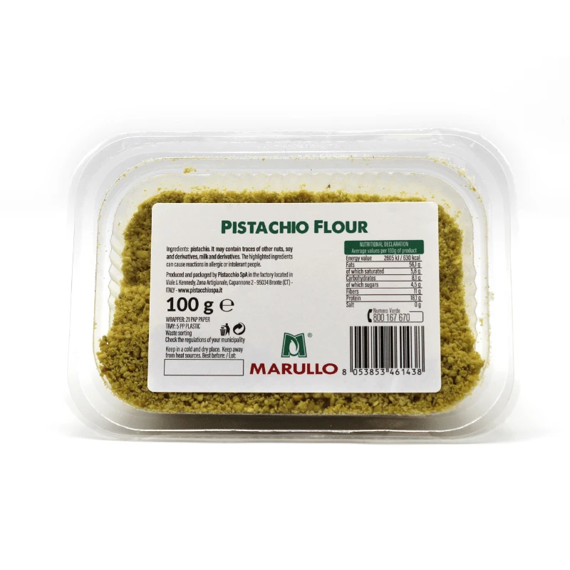 Marullo Pistachio Flour is a green-colored flour made from ground pistachios. You can use these pistachios to add a nutty flavor to baked goods as well as other recipes—both sweet and savory.