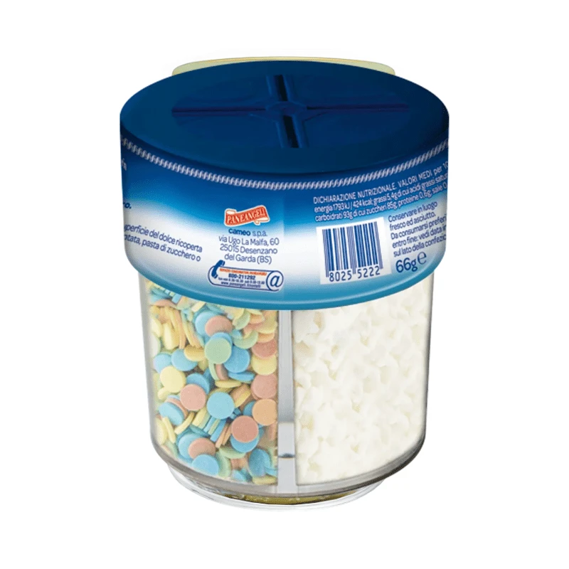 Paneangeli Fantasia di Zucchero is an assortment of Italian sprinkles made with real sugar. Decorate birthday cupcakes and ice cream sundaes with colorful rainbow sprinkles. Or use white sugar sprinkles to add a more subtle decorative touch to cake recipes.