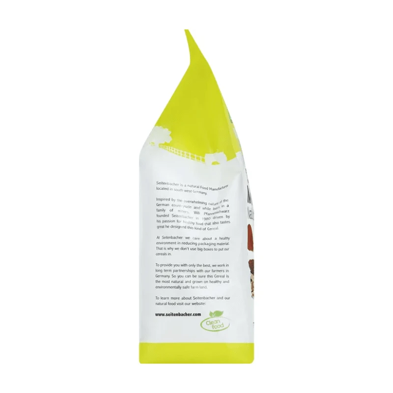 Whole Grain Spelt, Raisins Unsulphured, Peanuts, Whole Grain Oats, Sunflower Seeds, Barley Flakes, Apples Unsulphured, Hazelnuts, Wheat Germs.