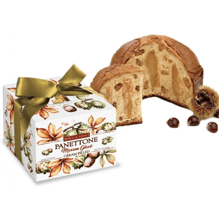 Take part in an Italian Christmas tradition with this panettone from Borgo de Medici. Filled with marron glacé cream, this authentic Italian cake has a light, buttery texture and an indulgent flavor.