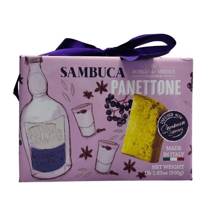 Take part in an Italian Christmas tradition with this panettone from Borgo de Medici. Infused with sambuca syrup, this authentic Italian cake blends zesty citrus and rich malted flavors with the distinct anise notes of sambuca, making for a vibrant dessert.