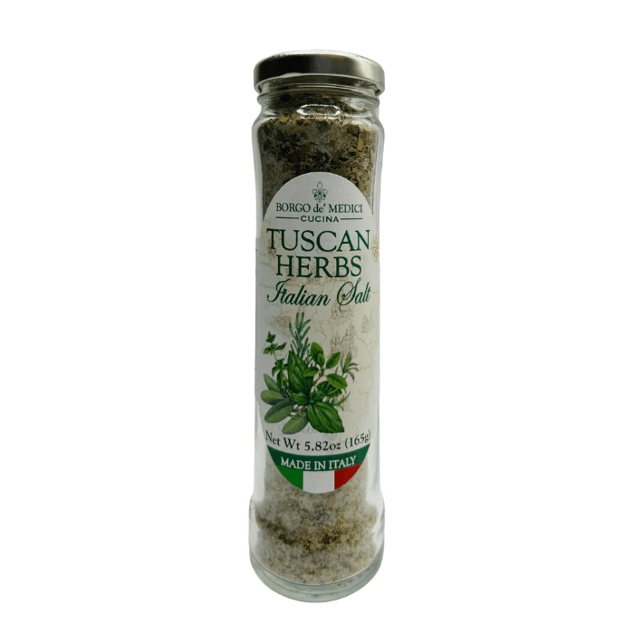 Borgo de Medici celebrates beautiful Tuscan ingredients in their products, including their Tuscan Herb Italian Salt. This seasoning blend mixes sea salt crystals with traditional herbs such as basil and laurel. Sprinkle this Italian herb salt over salads, pastas, and pizzas for a flavorful enhancement of your favorite Mediterranean dishes. Or use with any meats and vegetables to add a burst of Tuscan flavor.