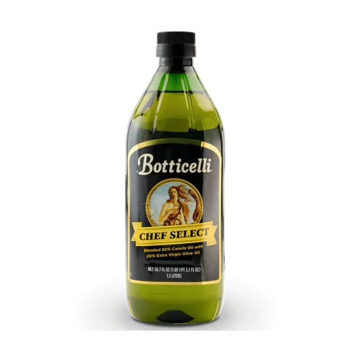 The high smoke point (high heat tolerance) of Boticelli Chef Select Blended Oil makes it a highly stable oil that doesn’t smoke at high heat. Due to its pure and mild flavor, this blend of 20% Mediterranean extra virgin olive oil and 80% canola oil succeeds at just about everything a cook wants it to do.