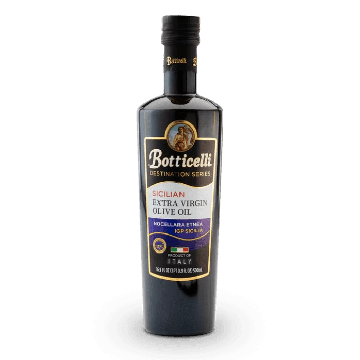 Botticelli Destination Series Sicilian IGP Extra Virgin Olive Oil is a cold-extracted oil originating from the Etna region of southern Italy. This type of olive oil is known as “Sicily’s gold.”