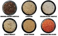 Add flair with the Hawaiian Alaea Red, pungency with Italian Black Truffle, savoriness with the Smoked Bacon Chipotle and Garlic Medley, and spice with the 5 Pepper and Asian Ginger salts. Whichever infused gourmet salt you choose from this gift set, your taste buds will thank you.