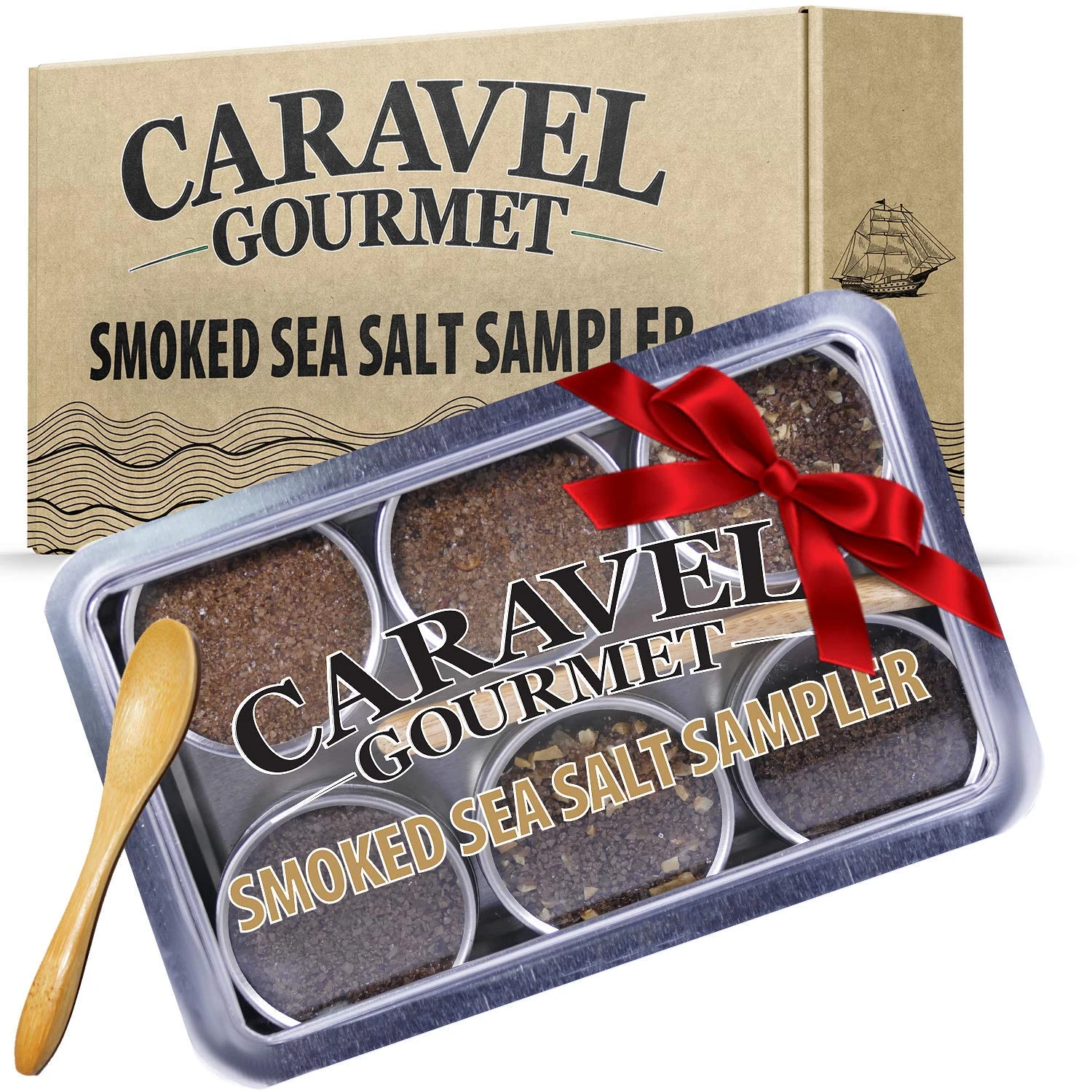 Caravel Gourmet Smoked Salt Sampler, 6 Tins comes in a charming ser of tins that contain Smoked Garlic, Smoked Garlic & Onion, Smoked Bacon, Smoked Bacon Chipotle, Smoked Cherrywood, and Smoked Alderwood flavors. Each infusion gives it’s own special touch to any pasta sauce, grill recipe, or cocktail. Use Smoked Alderwood for salmon and sea bass dishes, and of course Smoked Garlic and Smoked Bacon will compliment just about any savory dish. Try Smoked Bacon Chipotle on your blood mary rim!