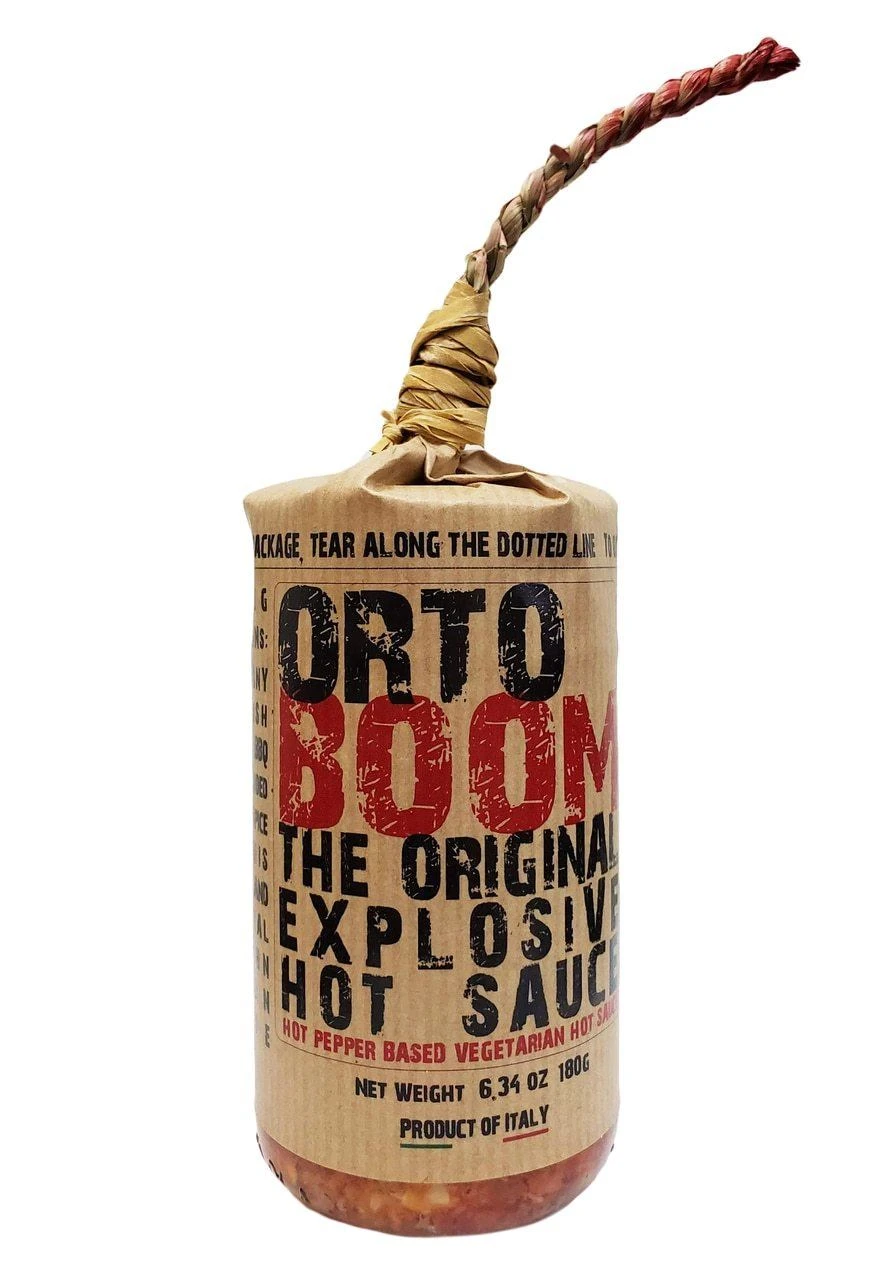 Casarecci Bomba Ortoboom Explosive Hot Sauce is a textured hot sauce that allows you to see all of its ingredients. This Southern Italian hot sauce is often added to pasta recipes and meat dishes to add spiciness and flavor. Try a dash or two in your favorite pasta and pizza sauces!