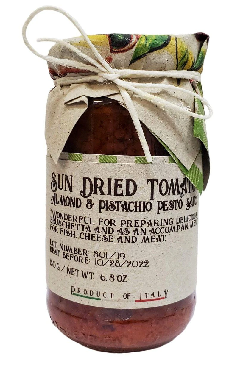 Casarecci Sun Dried Tomato Almond Pistachio Pesto Sauce is ideal for bruschetta. You can also use it to add an extra kick of flavor to fish, to meats such as beef and pork, and to your favorite cheeses. For a bolder meal, add freshly grated parmesan cheese and red pepper flakes. Enjoy authentic Calabrian flavor with this exquisite tomato, pistachio, and almond pesto sauce!