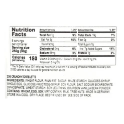 Wheat flour, sugar, palm fat, glucose syrup, maize starch, whole egg, soy flour, glucose-fructose syrup, salt, lemon peel, raising agents (ammonium bicarbonate, sodium hydrogen carbonate), emulsifier (Lecithins (soy)), Bourbon vanilla bean powder.