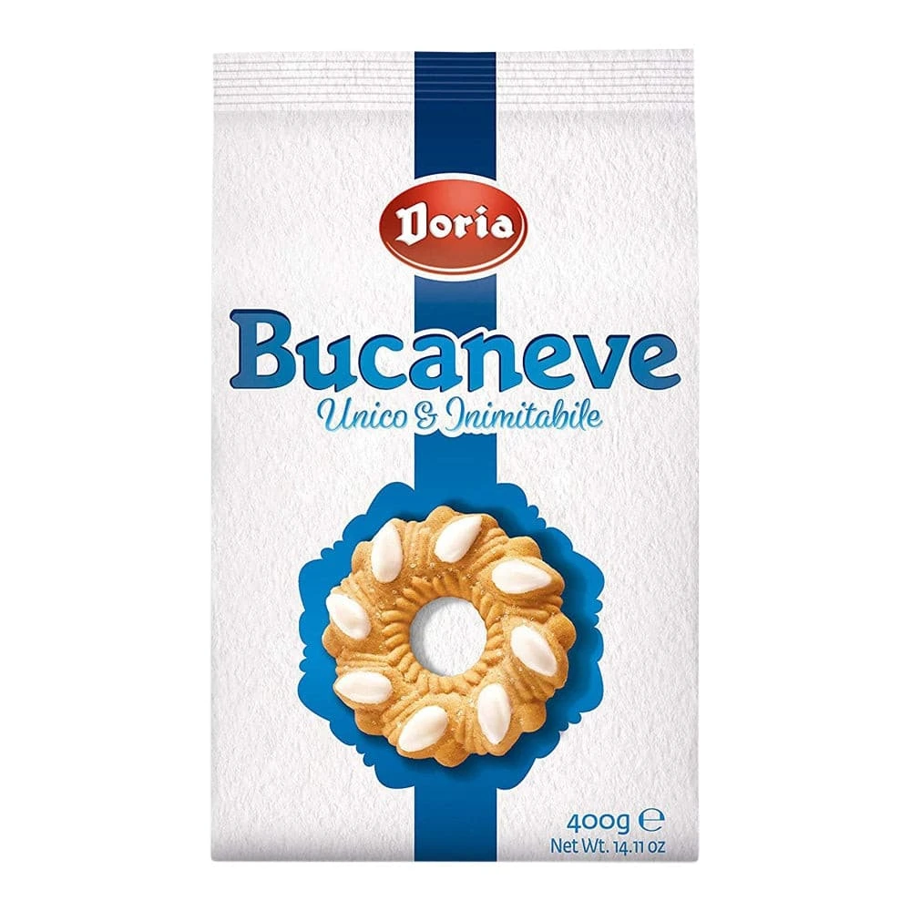 Doria Bucaneve Italian biscuits are made from wheat flour and decorated with white frosted sugar on top. Both crunchy and sweet, these biscuits are delicious with tea and coffee at breakfast time and will serve as a tasty finish to the end of an evening meal.