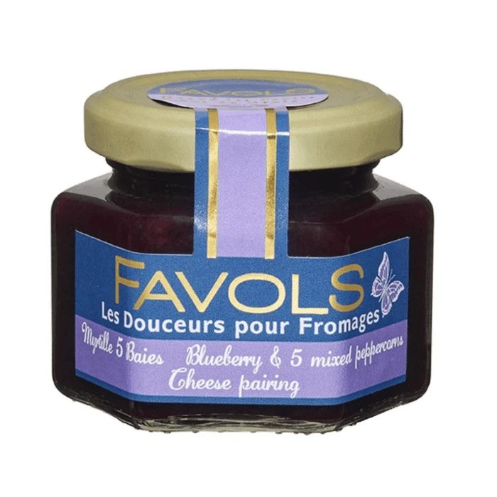Favols Blueberry & Mixed Five Peppers Jam is perfect for sampling with a selection of cheeses. This jam’s mix of blueberries and peppercorn offers a mild acidity and spice that pairs nicely with the lengthy flavors and scents of Savoie’s Comte, Gruyere, and Tomme cheeses in particular.