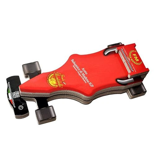 Fast Line Gift Set is ready for action. This unique, gourmet gift container, shaped like a Formula One race car, includes two of Fondo Montebello’s best balsamic vinegars and their classic Silician extra virgin olive oil.