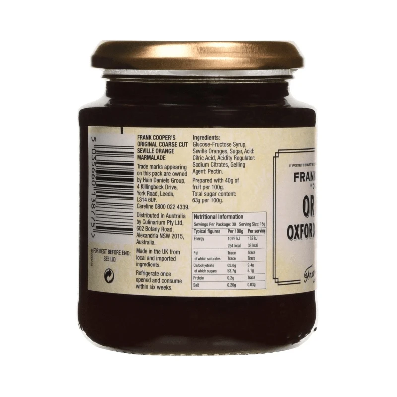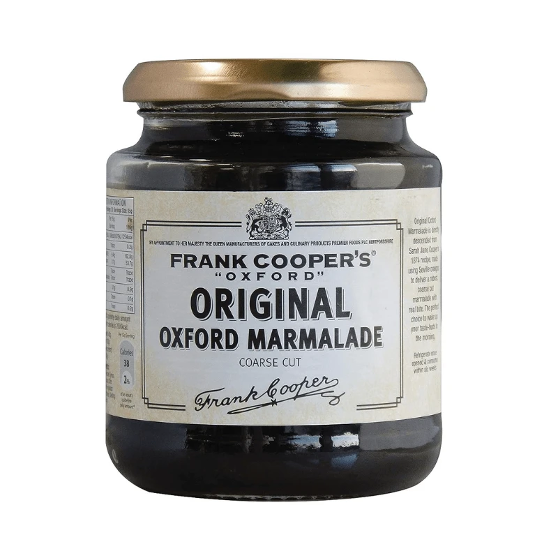 Frank Cooper Coarse Cut Original Oxford Marmalade is a sweet citrus fruit jam made with caramelized sugar. This classic marmalade from the United Kingdom pairs well with both sweet and savory dishes.