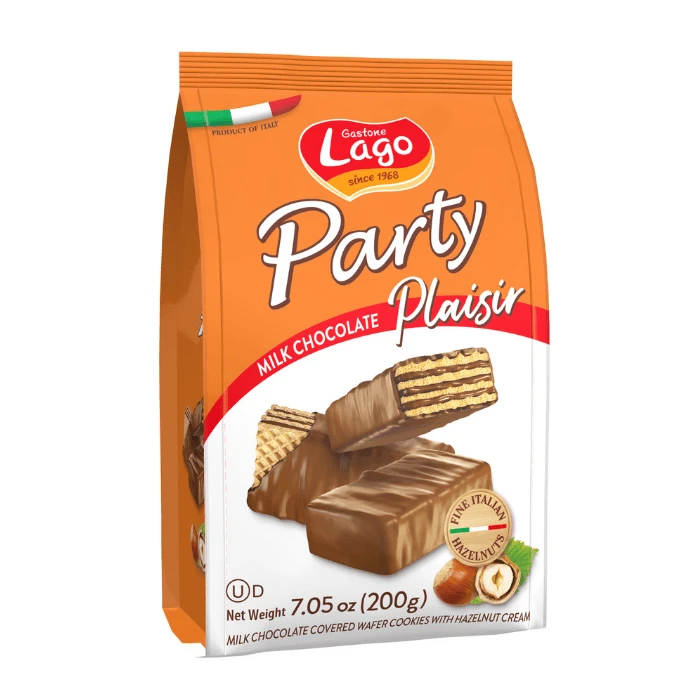 Gastone Lago Plaisir wafers have layers of smooth, creamy hazelnut and chocolate filling, complimented by stacks of fragrant, crunchy wafers. Then, the whole thing is covered in decadent milk chocolate. The irresistible taste and texture of these chocolate-covered wafer treats are perfect for sharing at a party or for movie night.