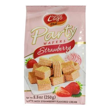 Gastone Lago Strawberry Wafers are pure heaven in the shape of a cube. Layers of creamy, sweet strawberry complement stacks of golden, crunchy wafers. When combined in these bite-sized desserts, they create an irresistible taste and texture. These delicious wafer treats are perfect for sharing at a party or for movie night. Try crushing them up and using them in a muffin recipe!