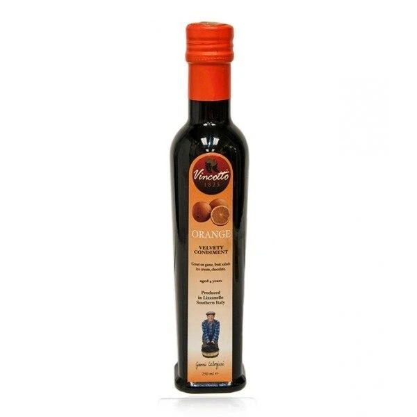 A year before the aging process, oranges and wine vinegar are joined to enhance the orange aroma of the vinegar. Orange Vincotto is an excellent Italian vinegar for Mediterranean recipes and dishes. This vinegar is well-paired with meats, fish, vegetables, meats, salads, and more.