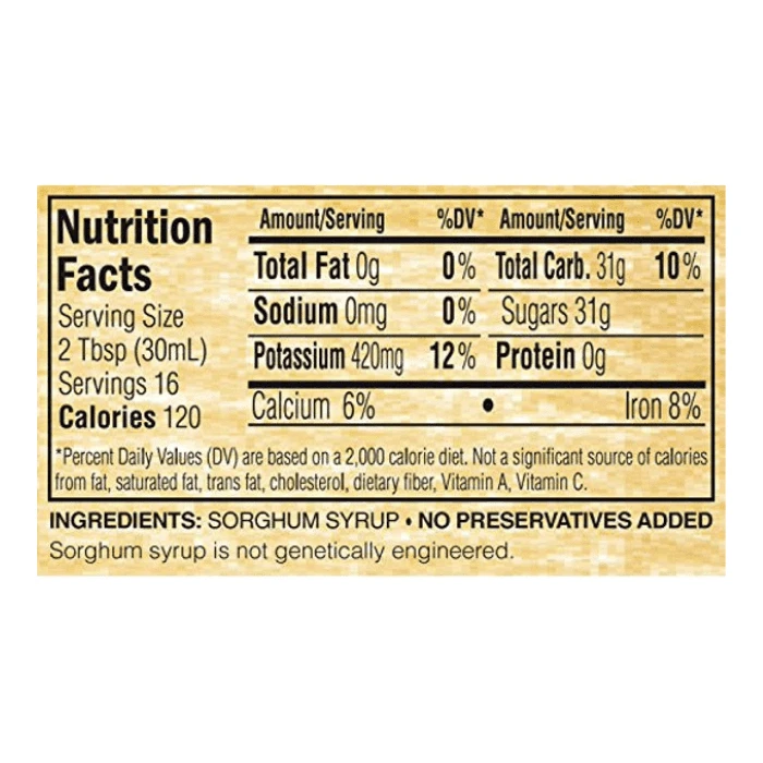 Sorghum is a dark sweet syrup with a flavor comparable to molasses but without the bitterness. Golden Barrel Sorghum Syrup can be substituted for molasses in any recipe that calls for molasses.