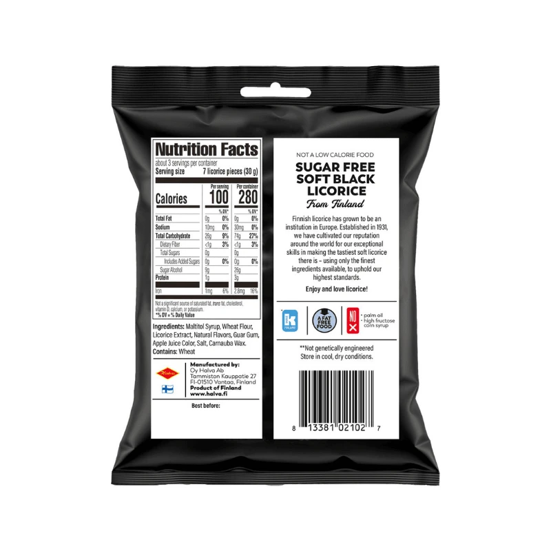 Halva Sugar Free Black Licorice gives you a traditional licorice flavor with none of the sugar. This sugar-free licorice candy has a soft, chewy texture. It’s delicious on its own as a snack and tastes even better when paired with a cup of tea. Add this sugar-free version of Halva’s licorice candy to a gift basket.