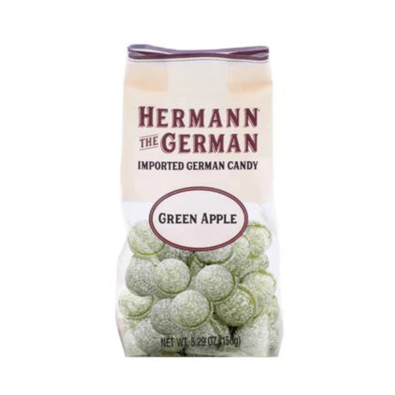 Hermann the German Green Apple Hard Candies balance sour and sweet flavors. This hard candy has a sanded texture and is made with natural colors and flavors. Enjoy a piece or two of this apple candy while working or studying. Or bring these apple candies to share on a road trip, hike, or picnic.