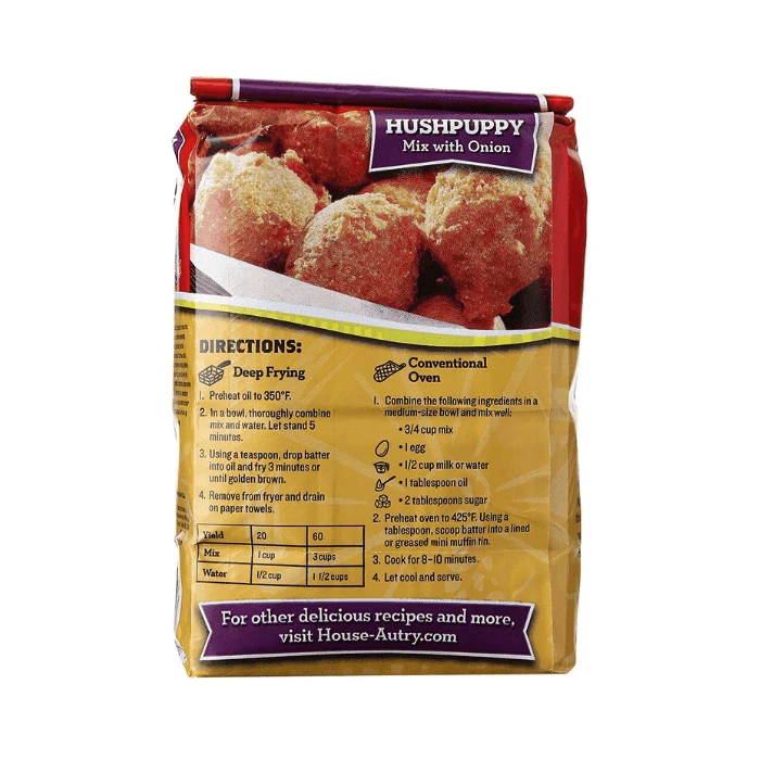 With House Autry Hushpuppy with Onion Mix, you can make crispy and tasty hushpuppies. It’s made with a seasoned flour mixture and can be deep-fried or cooked in a pan or oven. Easily prepare your dishes in about 15 minutes.