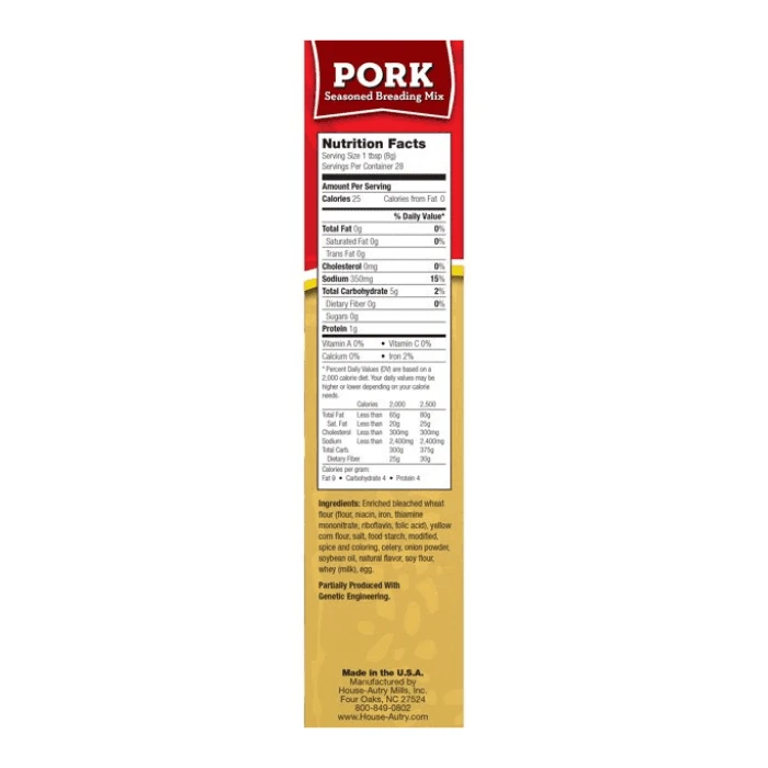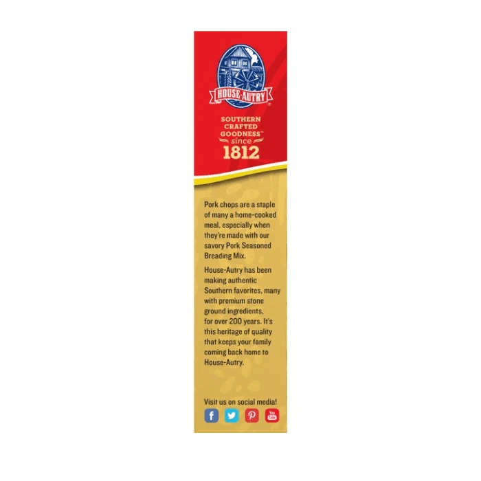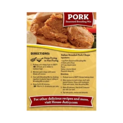 With House Autry Pork Breading Mix, you can make crispy and tasty pork dishes. Simply moisten your chosen cut of pork with water or milk, then coat the meat with this breading mix.