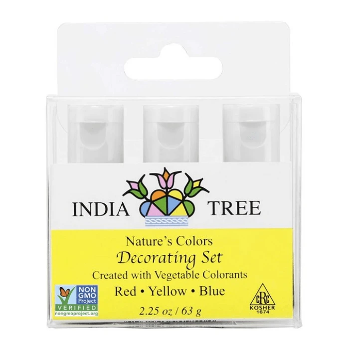 India Tree Nature’s Colors Decorating Colors are made with plant-based colorants, so you can have dazzling confectionary decorations without using artificial dyes. This set includes red, yellow, and blue dyes. The natural colors come from colorants approved by both the FDA and the EU.
