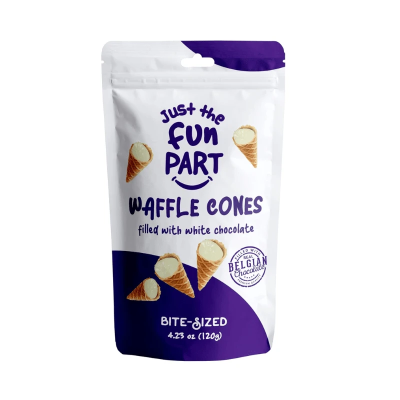 Just The Fun Part Mini Waffle Cones with White Chocolate are a crunchy, bite-sized treat. Enjoy these mini waffle cones on their own as an after-meal treat. Try them in a yogurt parfait with fresh fruit and pieces of dark chocolate. Or dunk them in espresso, hot cocoa, or spiced chai.