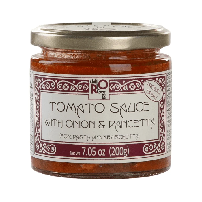 La Dispensa di Amerigo Tomato Sauce with Onion & Panchetta is a deeply savory Italian sauce. This meaty tomato sauce recipe can be enjoyed as part of pasta dishes, slow-cooker meals, and more.
