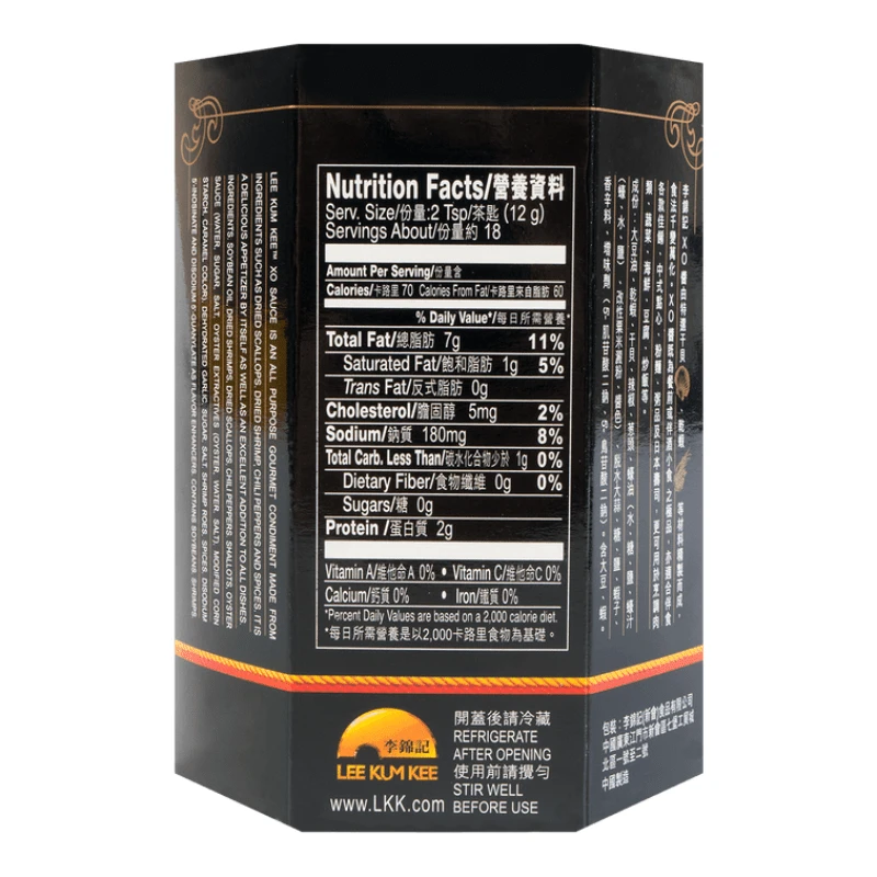 Soybean Oil, Dried Shrimps, Dried Scallops, Chili Peppers, Shallots, Oyster Sauce (water, Sugar, Salt, Oyster Extract (oysters, Water, Salt), Modified Corn Starch, Caramel Color), Dehydrated Garlic, Sugar, Salt, Shrimp Roes, Spices, Disodium 5-inosinate And Disodium 5′-guanylate As Flavor Enhancers. Contains Soybeans, Shrimps.