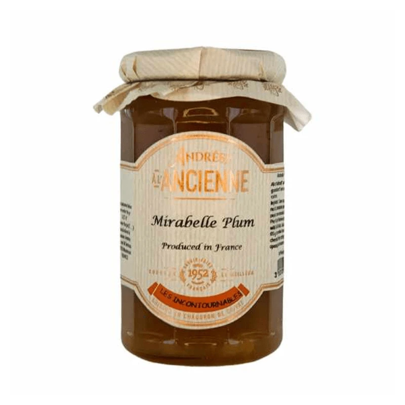 Les Confitures a l’Ancienne Mirabelle Plum Jam is made with real cane sugar and natural ingredients. This jam contains a blend of ripe plums and cane sugar with lemon juice, providing a balance of tart and sweet flavors.