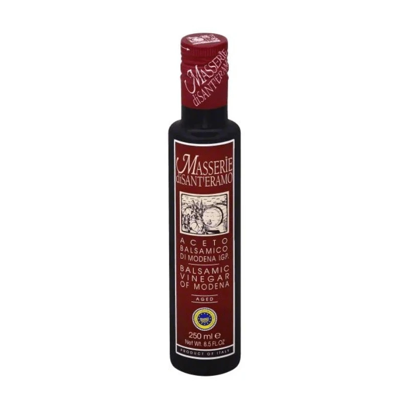 Masserie di Sant’Eramo Aged Balsamic Vinegar of Modena is made traditionally in Italy. Aged in wooden barrels, this balsamic condiment has a robust flavor that pairs well with grilled meats, roasted vegetables, and even fresh fruit.