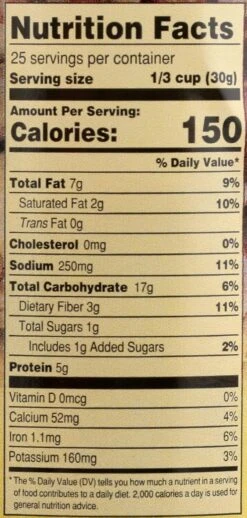 Corn Kernels, Fava Beans, Chickpeas, Valencia Almonds, Sunflower Oil, Rice Flour, Sea Salt
