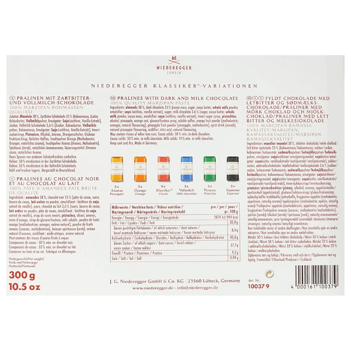 Niederegger Classic Marzipans Variety Gift Box is a thoughtful present for holidays, birthdays, and other special occasions. Enjoy this assorted marzipan box as part of a luxurious holiday platter. Or sample these German marzipan candies with a bottle of dessert wine.