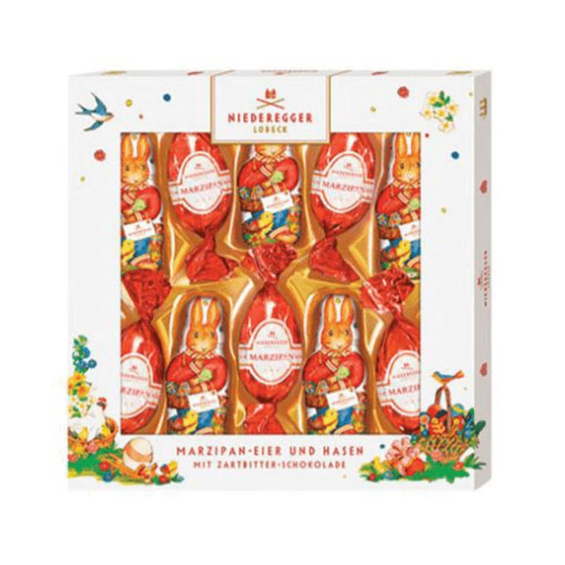 This Easter candy box features Niederegger’s famous German marzipan candies coated with rich chocolate.