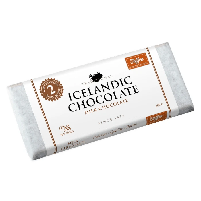 This Icelandic milk chocolate bar is made with toffee and sea salt.