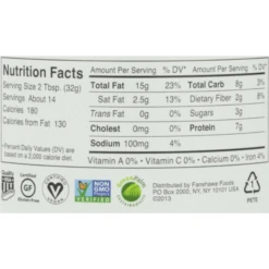 Free of hydrogenated oil, high fructose corn syrup, trans fat, and cholesterol.