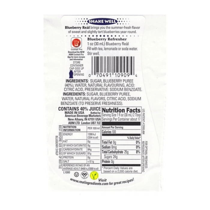 Use this Blueberry puree-infused syrup to make cool mixed beverages with intriguing new flavors! Smooth and luscious with a big flavor punch, this premium syrup is made with blueberry puree and just 100% cane sugar, making it naturally delightful. It readily dissolves in a wide range of beverage applications. Use it for specialty beverages in your bar or beverage service, such as frozen or shaken daiquiris, Italian sodas, beer cocktails, and bellinis. Or enjoy the fresh flavor of sweet blueberries in an ice cream sundae or shake. This blueberry fruit syrup is also fantastic for specialty cocktails at your cafe or sweet smoothies at your coffee shop!