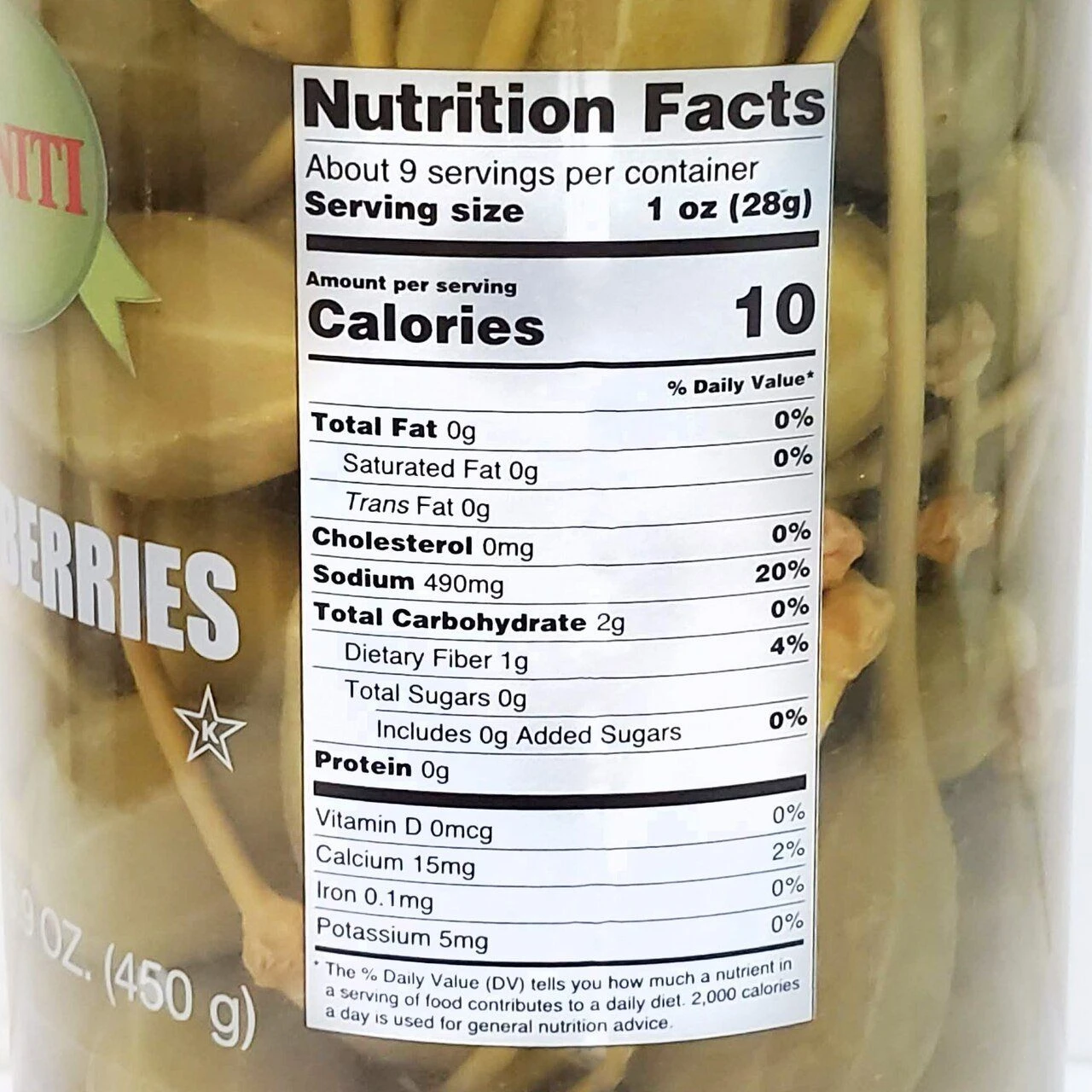 Sanniti Caperberries are the mature version of Sanniti Capers. Capers are the small buds harvested from the plant before they are allowed to grow. Sanniti Caperberries are the fruit that ultimately come of the plant. They are salty and sour, with a taste similar to olives. As with Sanniti Capers, Sanniti Caperberries can serve as a wonderful part of any seafood dish.