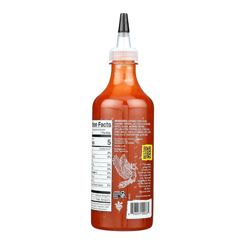 Sky Valley Sriracha Sauce is a sweet and hot pepper sauce made with cayenne pepper, jalapeno pepper, garlic, and other aromatics. This chili sauce makes a delicious dip for chicken wings, spring rolls, potstickers, and other appetizers. It’s also a delicious condiment for burgers, sandwiches, and wraps. Try adding this sriracha sauce to fried rice, stir-fries, noodle dishes, and even scrambled eggs.