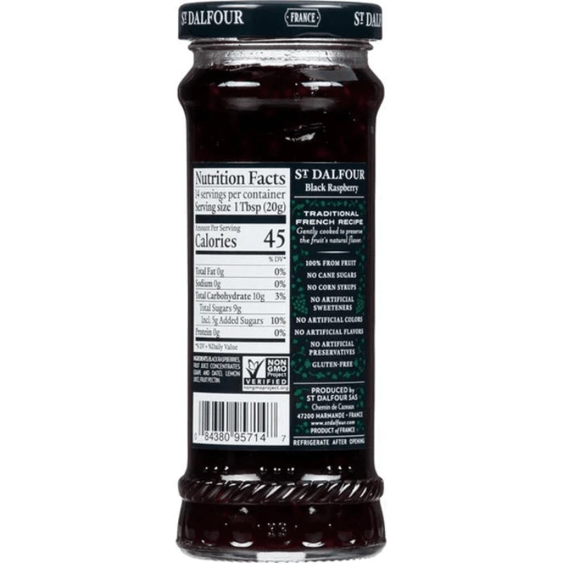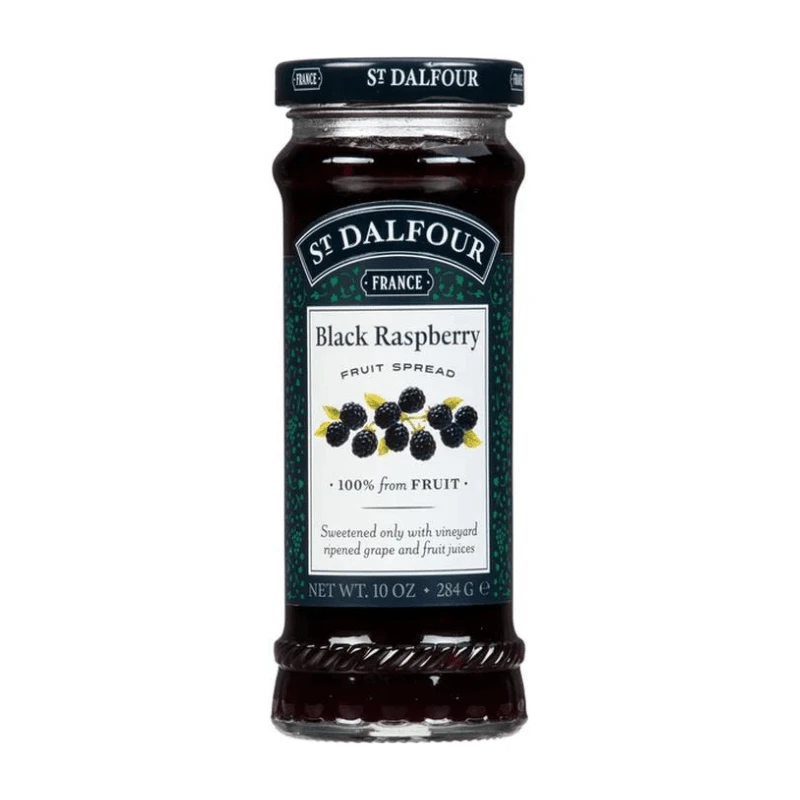 St. Dalfour Black Raspberry Fruit Spread has a sweet flavor. Try this raspberry spread on toast, crepes, pancakes, and waffles for a delightful breakfast. Add a spoonful of this berry spread to a cup of Greek yogurt with granola and fresh berries.