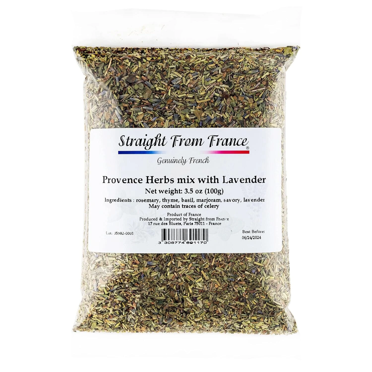 Straight From France Provence Herbs Mix with Lavender is an aromatic seasoning blend that’s great for flavoring a variety of French and Mediterranean recipes. Use this dried herb blend to flavor vegetable soups and stews. Toss it with extra virgin olive oil and wine vinegar for a robust salad dressing. Add it to braised chicken or beef dishes. Or try this spice blend as an alternative to an Italian seasoning mix for a pasta recipe.