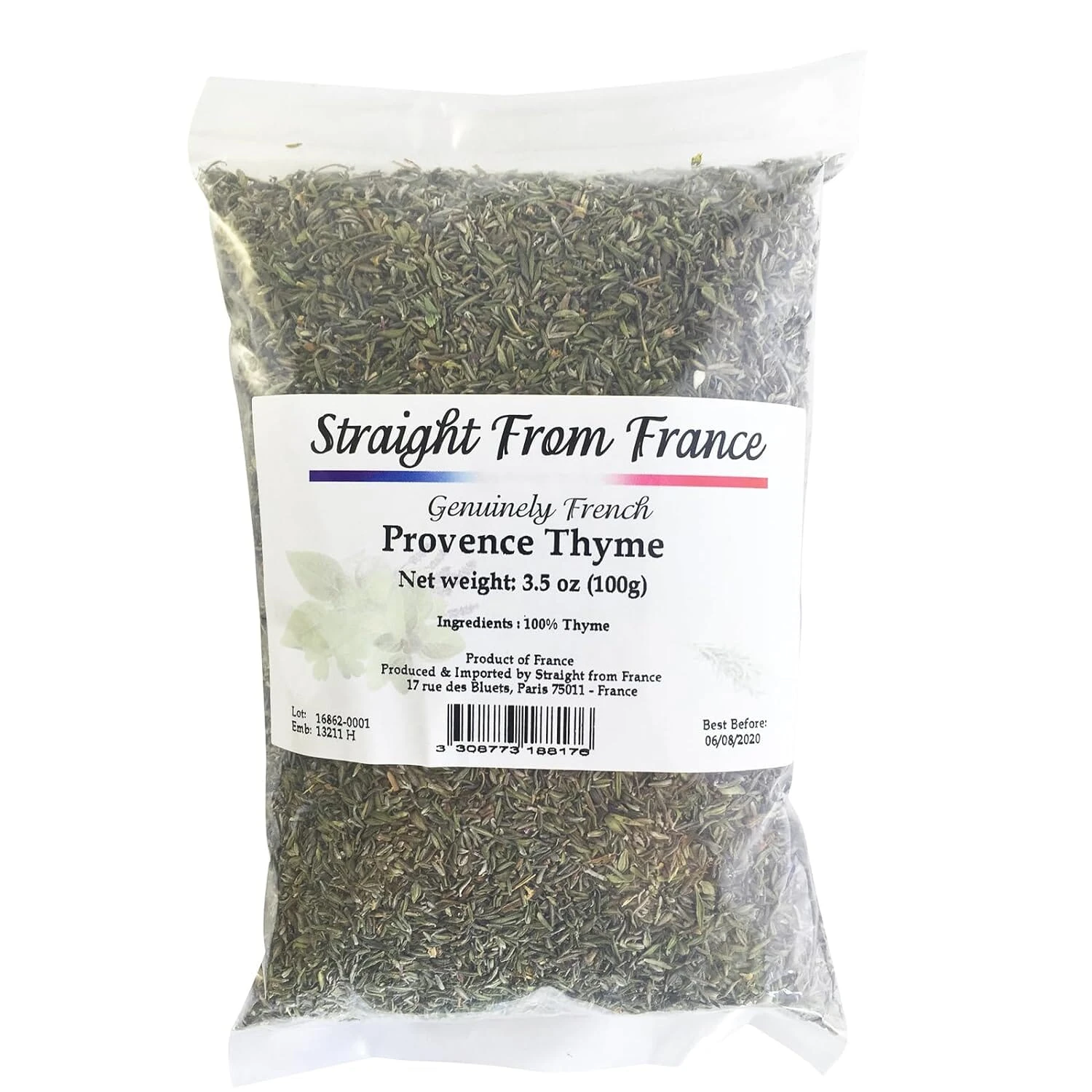Straight From France Provence Thyme is a high-quality French herb that can be used to flavor a variety of savory French and Mediterranean recipes. Use this thyme in roasted chicken, beef, and lamb recipes. Add this grey-green herb to stews and soups to give them a rich aroma. Or mix this thyme de Provence with extra virgin olive oil and wine vinegar in salad dressings and marinades.