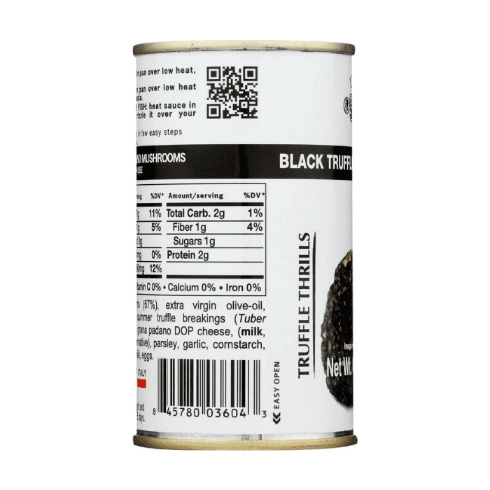 Urbani Truffle Thrills Black Truffles & Mushroom Sauce is an aromatic sauce with real truffles. This mushroom and truffle cream sauce also contains extra virgin olive oil, grana padano cheese, garlic, and other aromatic ingredients.