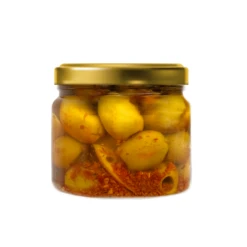Pitted green olives, salt, water, sugar, orange, sunflower oil, red pepper flakes, oregano, lactic acid, citric acid