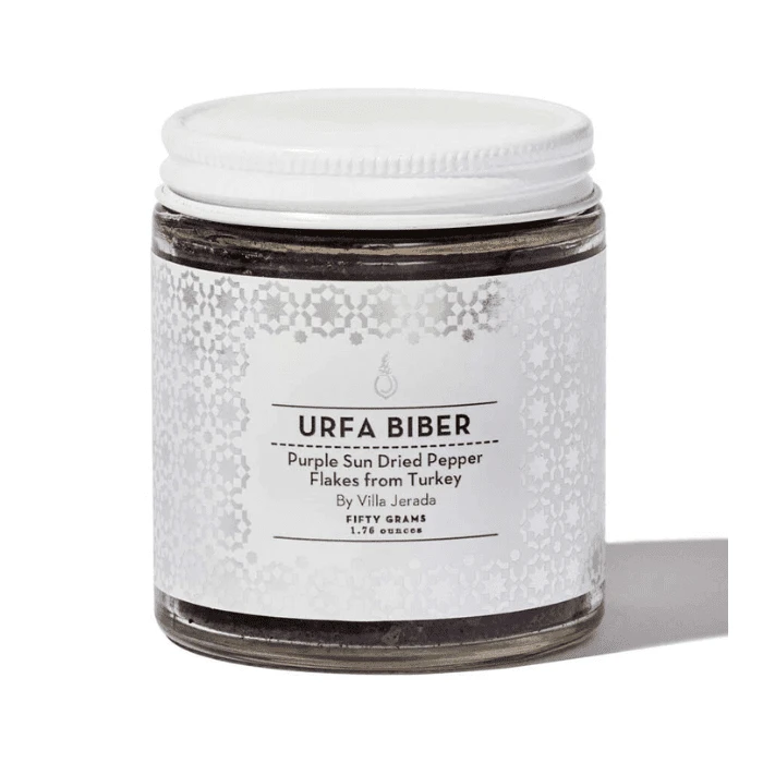 Urfa Biber by Villa Jerada are Turkish sun-dried pepper flakes with a unique purple color. These medium-hot peppers are cultivated in the Urfa region of Turkey. They contain smoke and heat that are both sophisticated and easy to add to savory recipes. These pepper flakes pair nicely with savory cheeses, smoky meats, and hearty veggies.