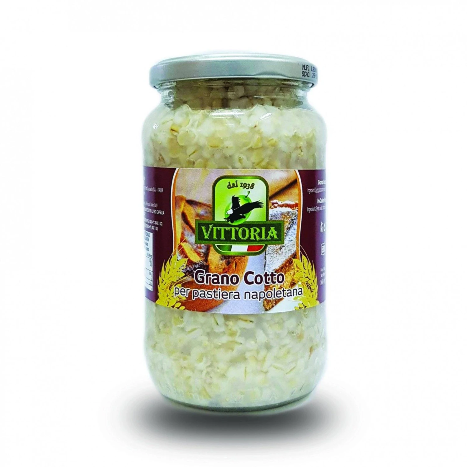 Vittoria Grano Cotto Cooked Wheat Grain Pastiera Napoletana, the enchanting taste of Naples captured in a 20.5 oz jar. Enjoy the taste of Italian tradition with this classic dish that showcases culinary excellence.